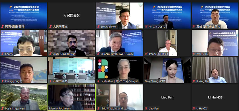 O "Seminário BRICS 2022: buscar o desenvolvimento compartilhado de alta qualidade" foi realizado online na terça-feira (7). O evento foi co-patrocinado pelo Instituto da América Latina e pelo Escritório de Cooperação Internacional, ambos subordinados à Academia Chinesa de Ciências Sociais (CASS), e co-organizado pelo Escritório do Grupo de Líderes de Xiamen do Centro de Inovação da Parceria do BRICS sobre a Nova Revolução Industrial. Mais de 150 funcionários do governo, especialistas, acadêmicos e jornalistas dos países membros do BRICS - Brasil, Rússia, Índia, China e África do Sul, participaram no evento.