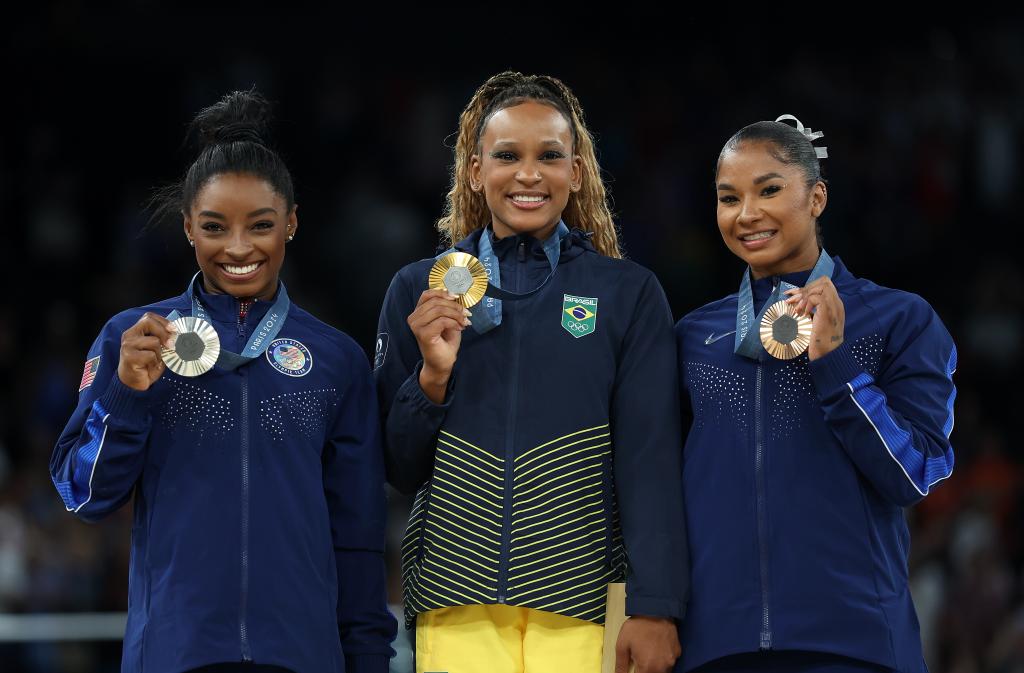 No momento em que a ginasta brasileira, que se consagrou campeã olímpica do solo, subiu ao topo do pódio, Simone Biles dos EUA, que venceu a medalha de prata, e Jordan Chiles também do país norte-americano, que venceu o bronze, colocaram um joelho no chão e fizeram uma reverência à vencedora da prova.