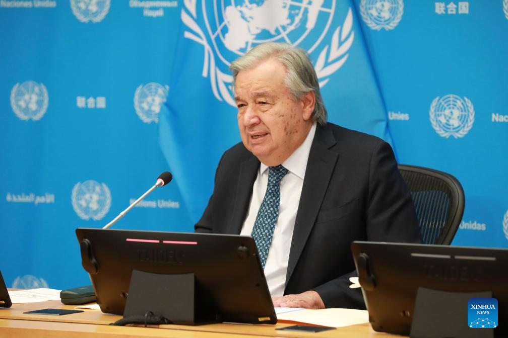 O Secretário-Geral da ONU, António Guterres, fala à imprensa na sede da ONU, em Nova York, em 16 de setembro de 2025. (Xie E/Xinhua)