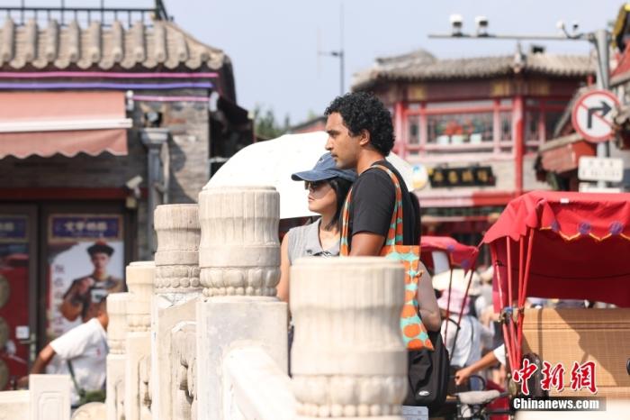 Turistas estrangeiros visitando a área de Shichahai, em Beijing. (Foto de arquivo: Jia Tianyong/China News Service)