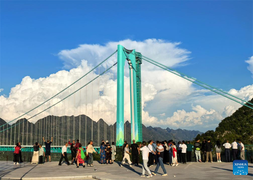Durante o feriado de oito dias do Dia Nacional da China e do Festival do Meio do Outono, que terminou na quarta-feira (8), a recém-inaugurada Ponte do Grande Cânion de Huajiang, com 625 metros de altura sobre o Rio Beipan, tornou-se uma grande atração.