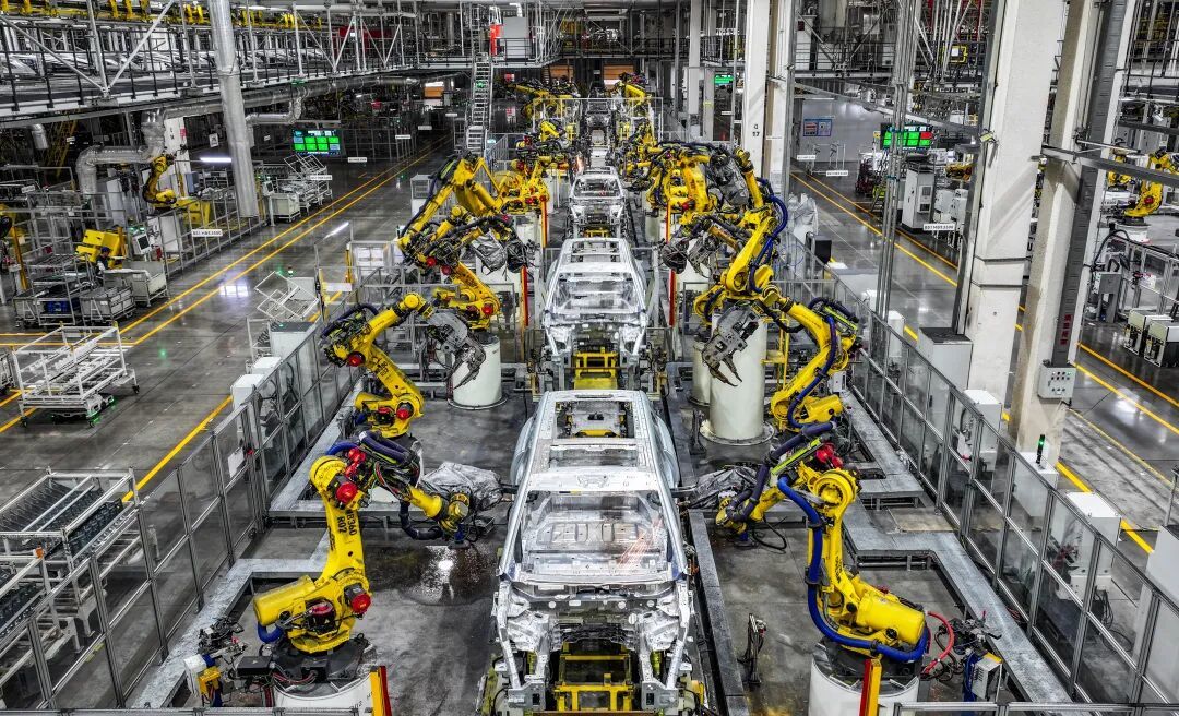 Linha de produção automatizada na mega fábrica da Seres, localizada na Nova Área de Liangjiang, em Chongqing. (Wang Quanchao/Xinhua)
