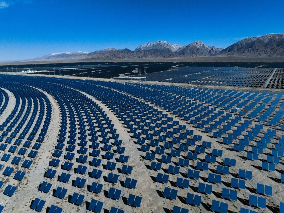 Usina de energia solar térmica no Parque Industrial Fotovoltaico e Solar-Térmico de Delingha, na Prefeitura Autônoma Mongol-Tibetana de Haixi, província de Qinghai. (Zhang Long/Xinhua)