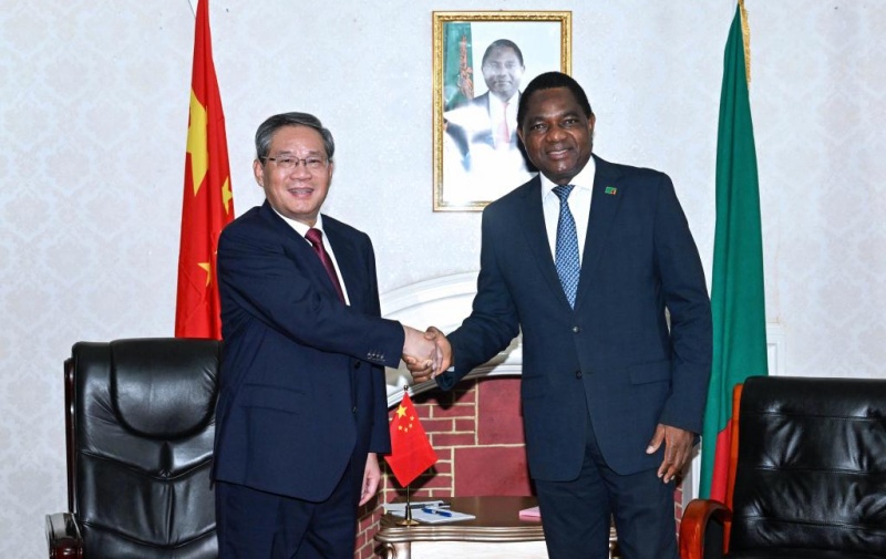O primeiro-ministro chinês, Li Qiang, afirmou na quinta-feira que a China está pronta para trabalhar com a Zâmbia, aproveitando a implementação do tratamento de tarifa zero da China para a Zâmbia como uma oportunidade para expandir o comércio bilateral e explorar o potencial de cooperação em setores industriais, como mineração, veículos de nova energia e inteligência artificial.