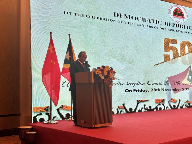 A Embaixada de Timor-Leste na China realizou, na última sexta-feira (28), uma cerimónia em Beijing, por ocasião dos 50 anos da declaração de independência do país. O vice-presidente do Comitê Nacional da Conferência Consultiva Política do Povo Chinês (CCPPCh), Yang Zhen, e o vice-ministro das Relações Exteriores da China, Sun Weidong, estiveram presentes, a convite da embaixada. Representantes de diversas missões diplomáticas, organizações internacionais e convidados chineses e estrangeiros também participaram no evento.