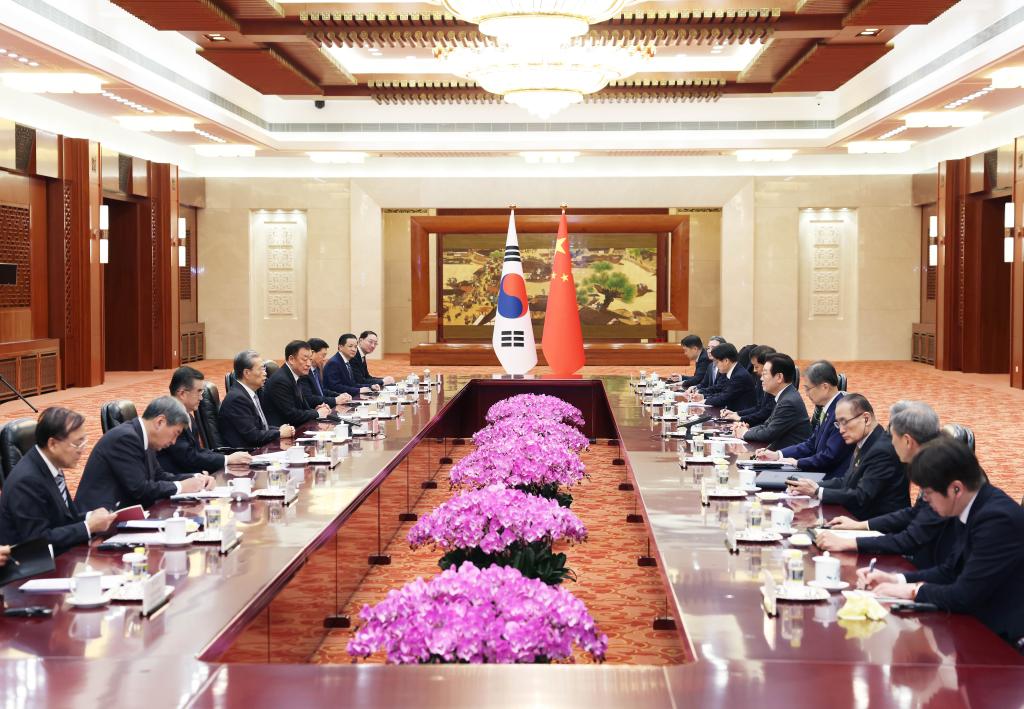 Zhao Leji, presidente do Comitê Permanente da Assembleia Popular Nacional (APN), reuniu-se com o presidente da República da Coreia, Lee Jae Myung, em Beijing, na terça-feira.