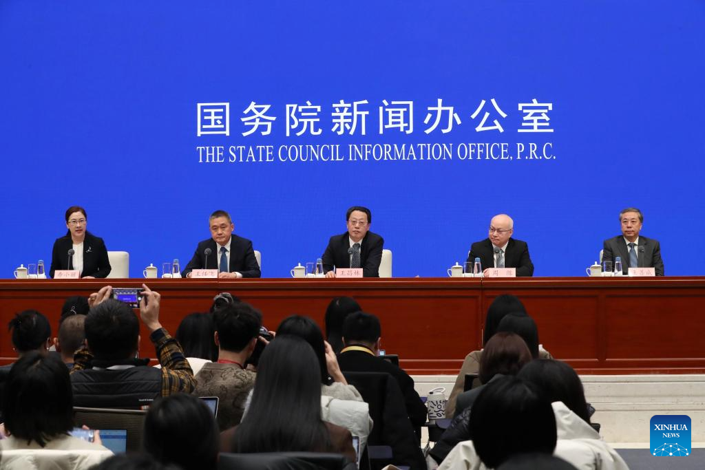 Wang Changlin, vice-presidente da Comissão Nacional de Desenvolvimento e Reforma (NDRC), Zhou Chen, diretor-geral do Departamento de Economia Nacional da NDRC, Wang Renfei, diretor-geral do Departamento de Reforma Abrangente do Sistema da NDRC, e Wang Shancheng, diretor-geral do Departamento de Conservação de Recursos e Proteção Ambiental da NDRC, participaram de uma coletiva de imprensa realizada pelo Gabinete de Informação do Conselho de Estado (SCIO) sobre a implementação dos princípios orientadores da Conferência Central de Trabalho Econômico e a garantia de um bom começo para o 15º Plano Quinquenal (2026-2030) em Beijing, capital da China, em 20 de janeiro de 2026. (Foto: Shan Yuqi/Xinhua)